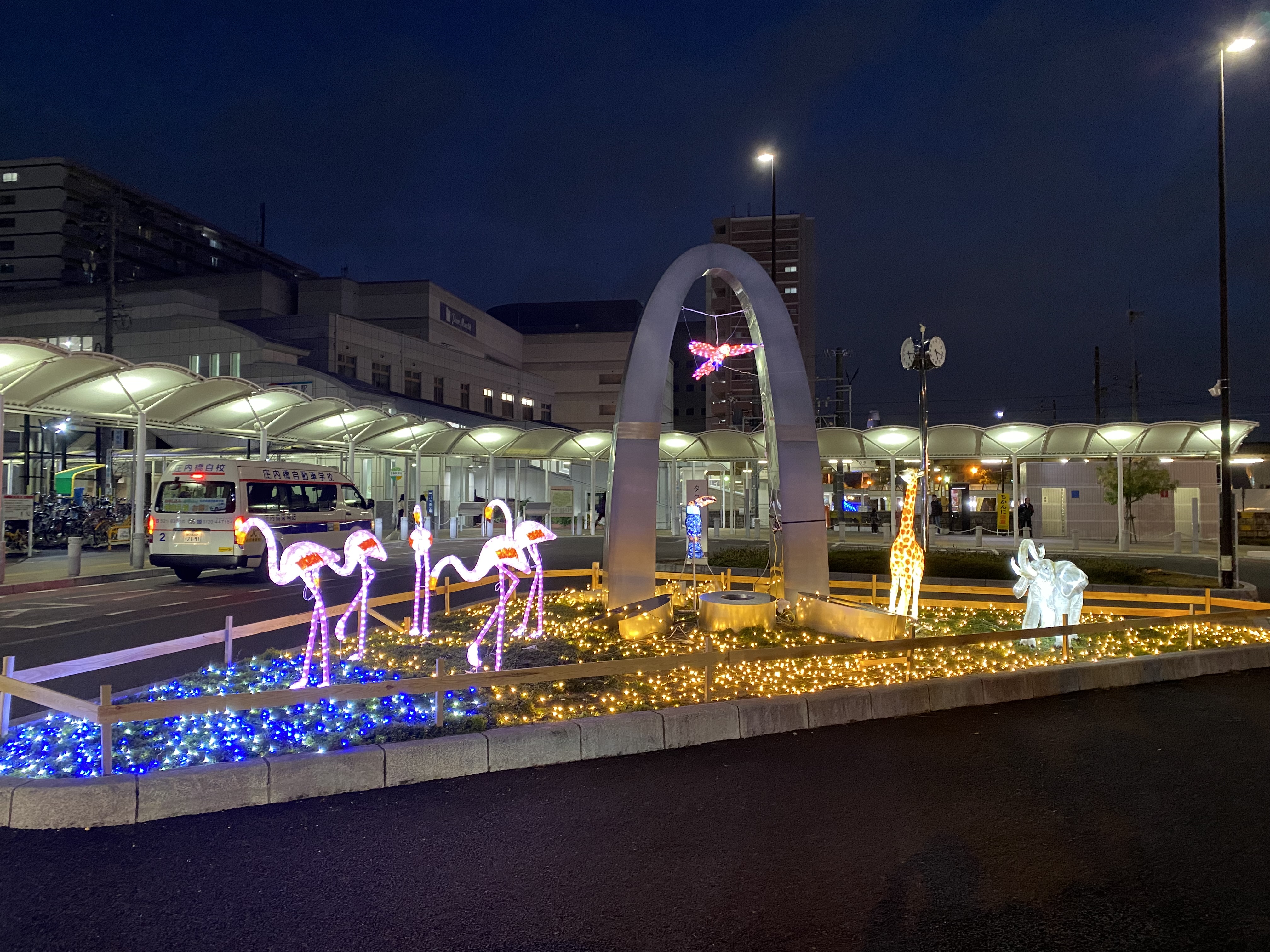 去る12月19日(日) 西春駅前東西ロータリー周辺にて、イルミネーションプロジェクト「NIGHT OASIS 2021」の点灯式を開催いたしました。 本事業は、地域事業者の方々などから多くの協賛金をいただき、例年よりスケールアップして事業運営いたしました。 今年度は、光る動物園をコンセプトにイルミネーションを設置いたしました。 イルミネーションが皆様の心の安らぎになれば幸いです。 (沖野 剛) |