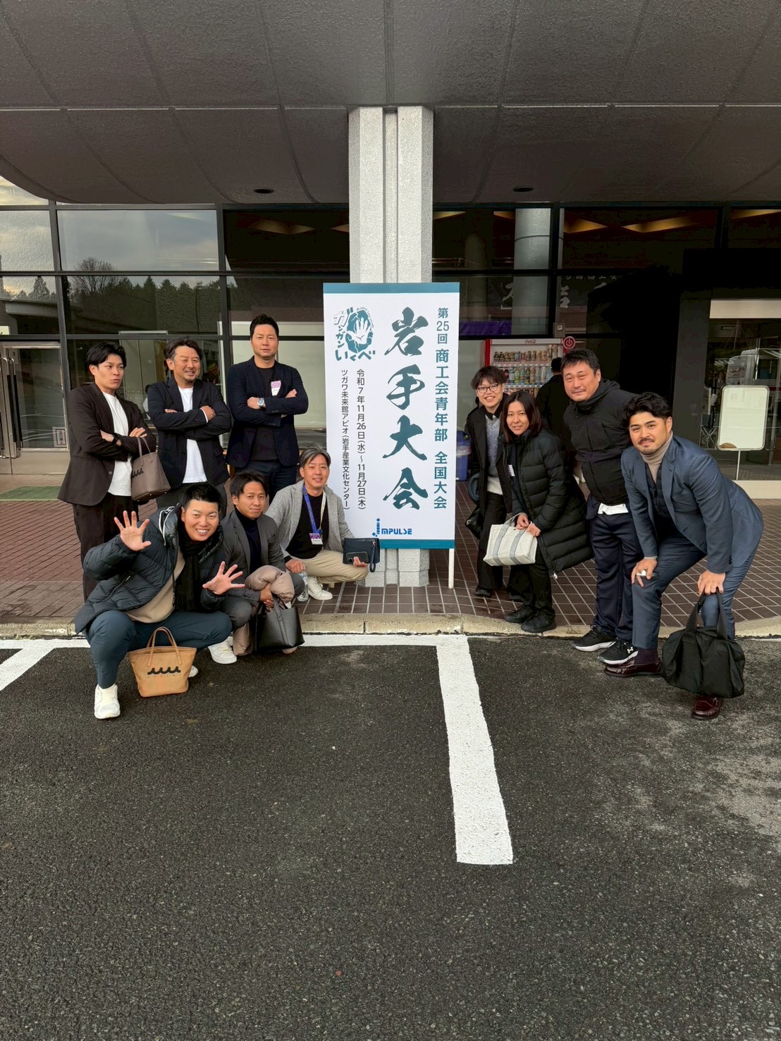 | 第25回商工会青年部全国大会が、岩手県のアピオ岩手産業文化センターにて11月26日・27日の2日間をかけて開催されました。会場はアリーナで、普段は前の舞台に立って話す形式ですが、今回は登壇者が中央のステージに立って話す形式で、360度 参加者から囲まれて話すという新しいスタイルで、めちゃくちゃ臨場感あって面白かったです。 今回、最優秀賞をとった埼玉県久喜市の青年部の取組みがとても面白く印象に残ってます。内容は体育館一面を使い、青年部のみんなの経験を元にした「超巨大リアル人生ゲーム」。マスの内容は『全財産の半分を市に寄付する』『地元のショッピングモールに出店して売上UP』『ビジネスコンテストで優勝』など、、、地域に密着した内容で、小さな子どもでもわかりやすく働く事や、お金を稼ぐ事を学ぶ事ができる素敵な取組みでした。日本各地の青年部の取組みを聞きすごく刺激になりました。北名古屋市青年部も負けないように、